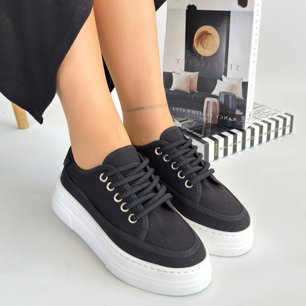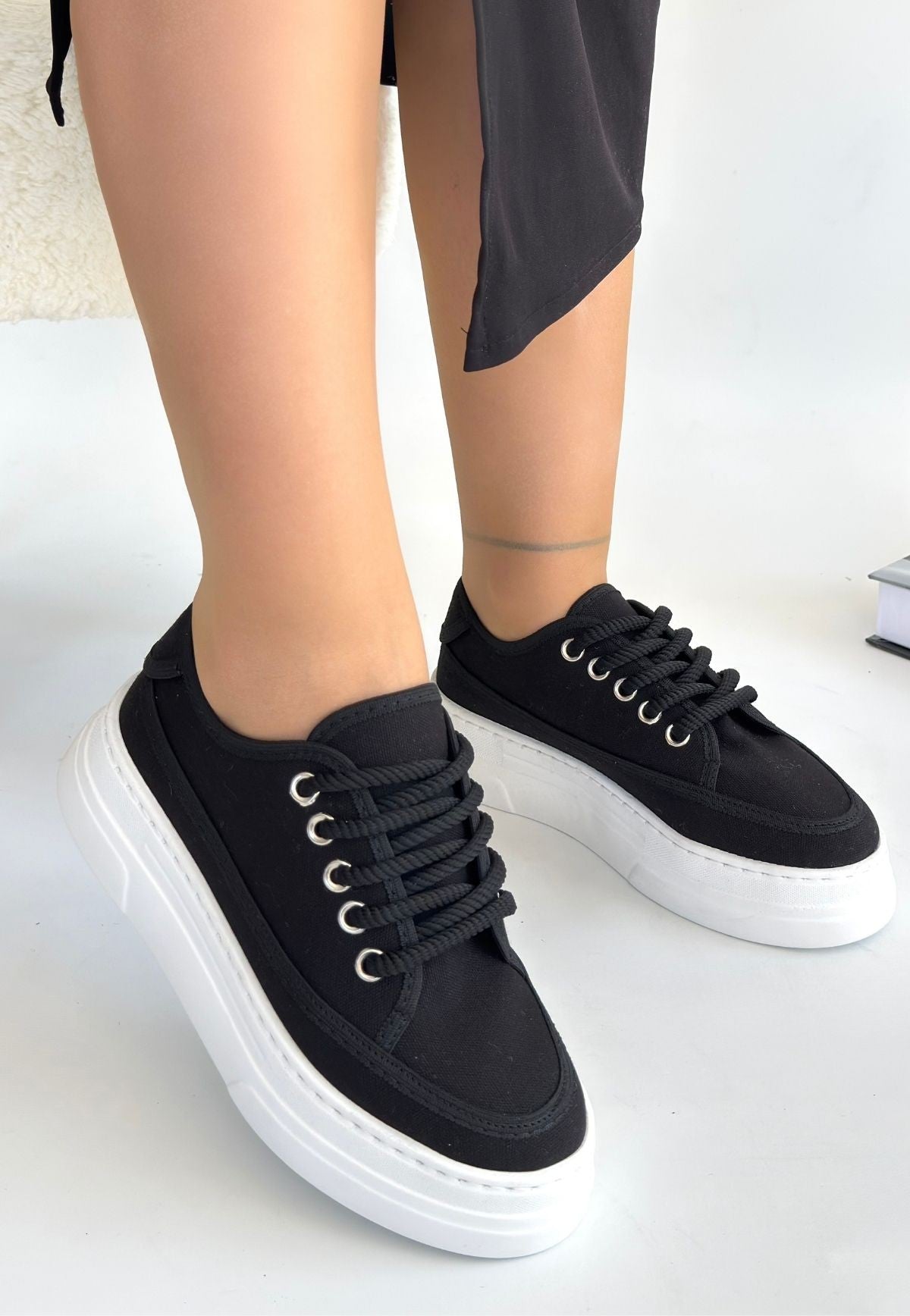 Carin Siyah Keten Bağcıklı Spor Ayakkabı