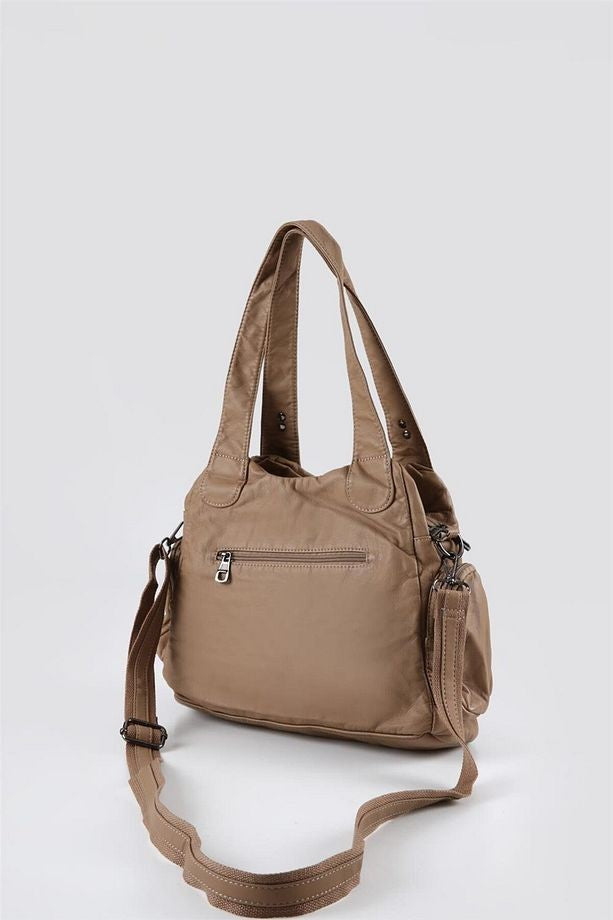 Yıkama deri materyali, zamanla daha da şık bir hale gelir ve çantaya kendine has bir karakter kazandırır. Hem iş hayatında hem de sosyal etkinliklerde rahatlıkla kullanabileceğiniz bu omuz çantası, şıklığınızın tamamlayıcısı olacak.