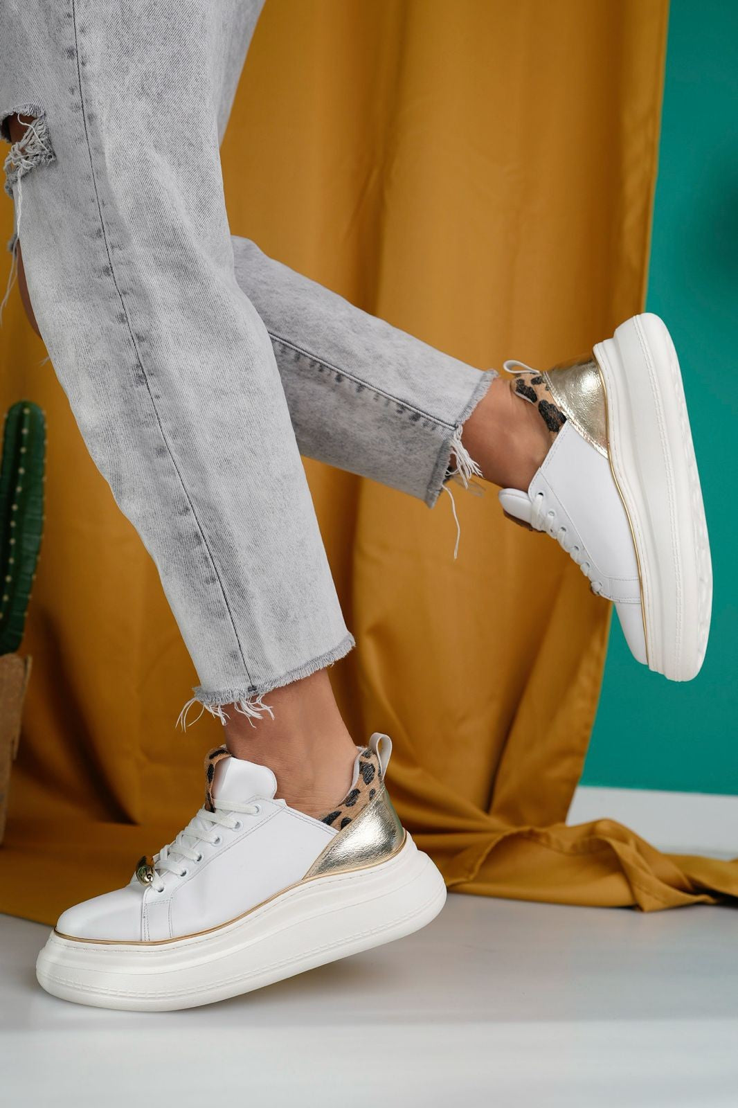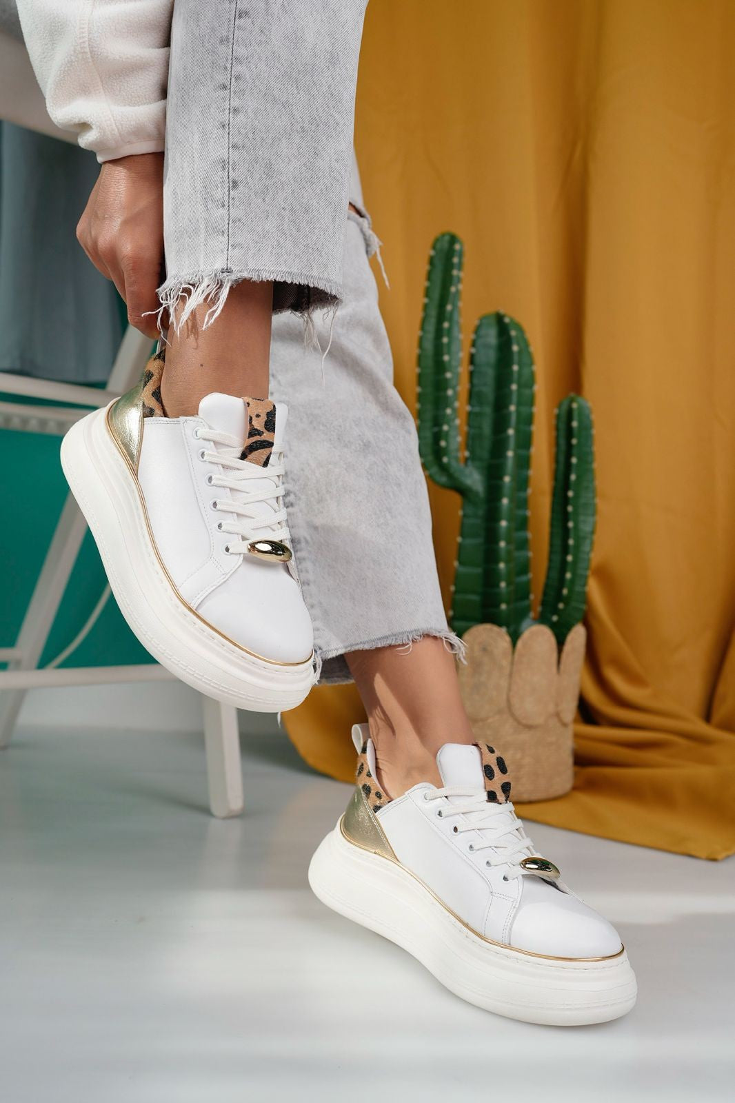 Jista Beyaz Cilt Bağcıklı Spor Ayakkabı