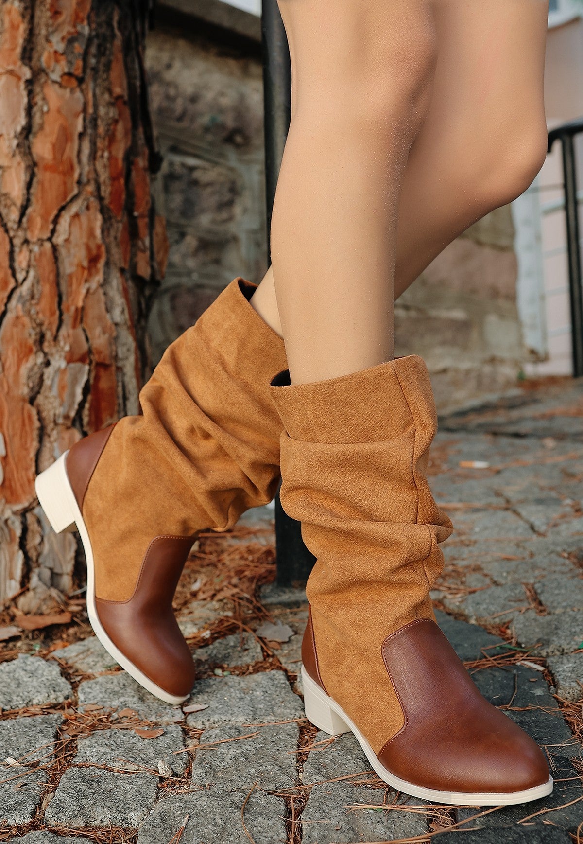 Jolin Taba Cilt Süet Detaylı Çizme