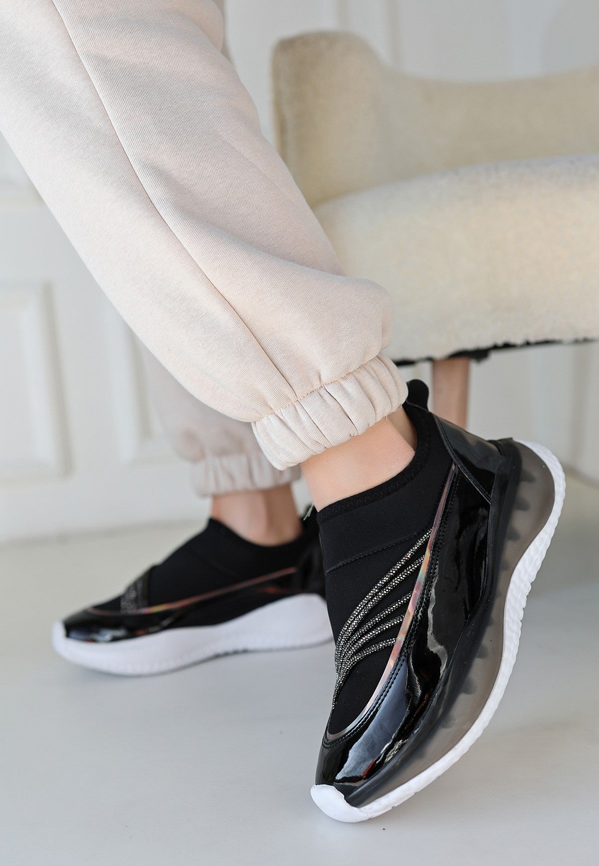 Keita Siyah Rugan Streç Detaylı Spor Ayakkabı