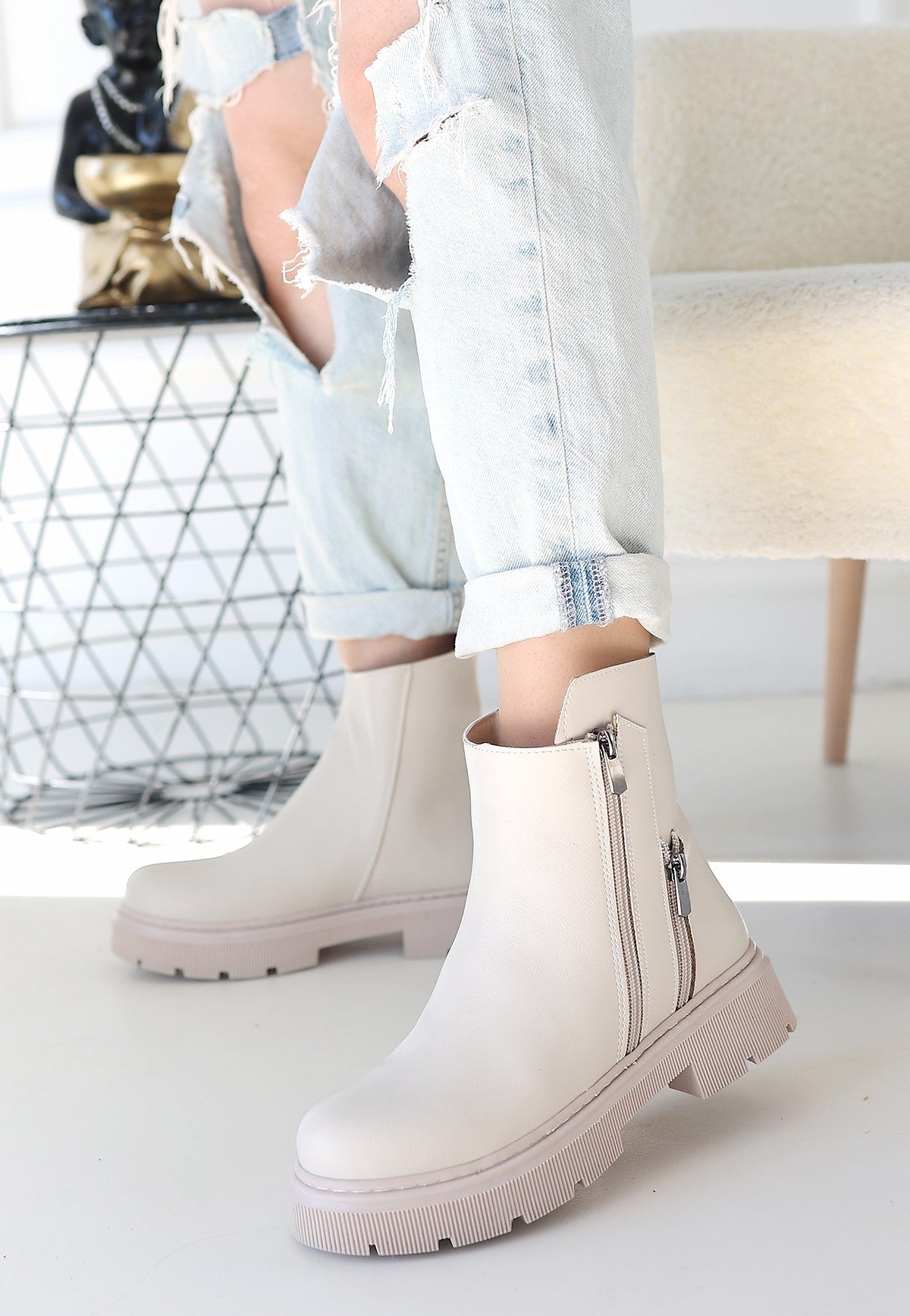 Detay : Topuklu Yandan Fermuarlı Bağcıklı Bot