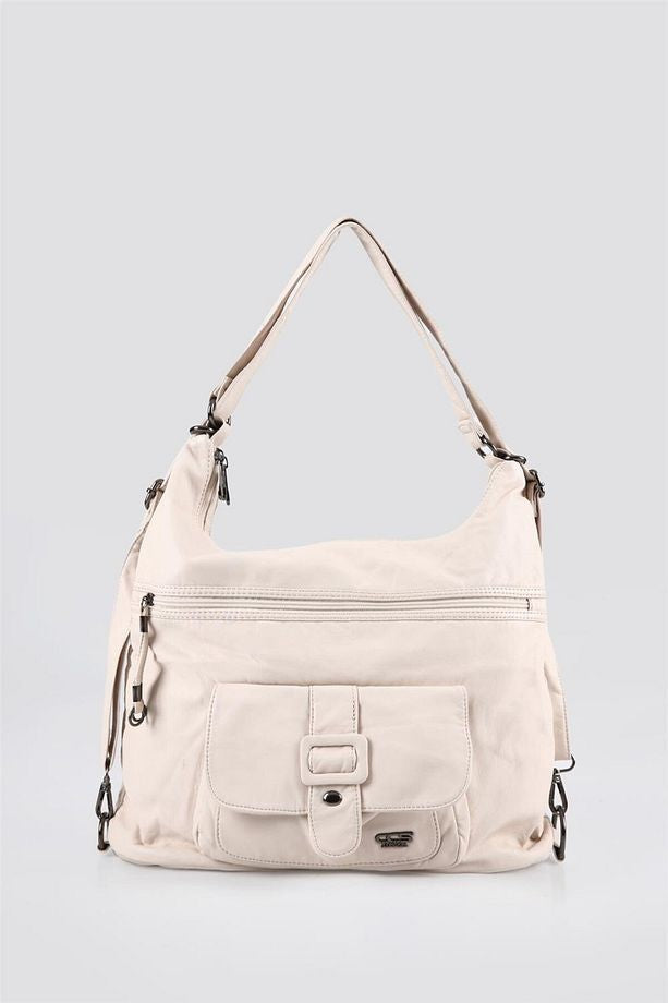 şıklığı ve pratikliği bir arada sunan kadın omuz ve sırt çantasıdır. Yüksek kaliteli yıkama deri malzemesiyle üretilmiş olan bu çanta, her iki kullanım şekliyle de rahatlık ve fonksiyonellik sağlar. Hem omuzda hem de sırt çantası olarak kullanılabilir, böylece tarzınıza ve ihtiyacınıza göre esneklik sunar.