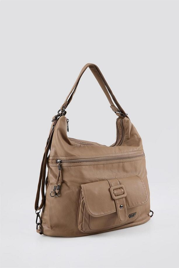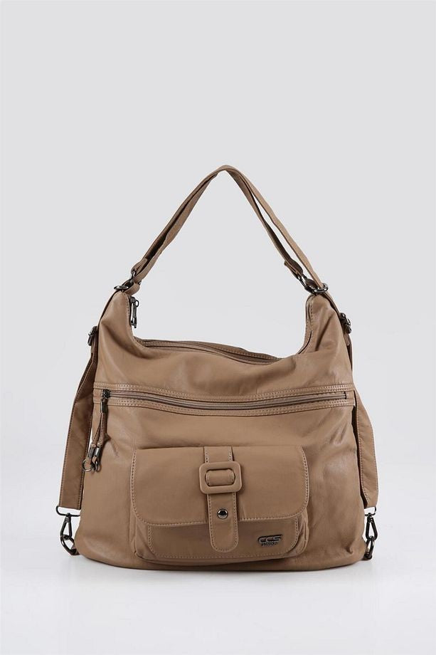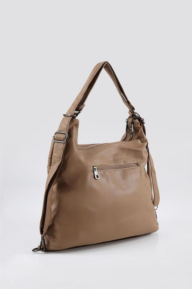 şıklığı ve pratikliği bir arada sunan kadın omuz ve sırt çantasıdır. Yüksek kaliteli yıkama deri malzemesiyle üretilmiş olan bu çanta, her iki kullanım şekliyle de rahatlık ve fonksiyonellik sağlar. Hem omuzda hem de sırt çantası olarak kullanılabilir, böylece tarzınıza ve ihtiyacınıza göre esneklik sunar.