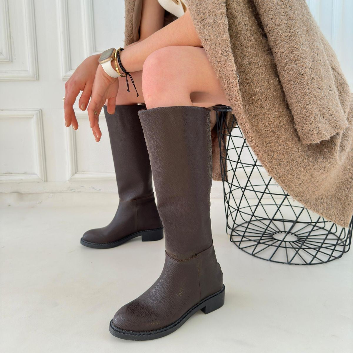 Detay: Arkadan Fermuarlı Diz Altı Çizme