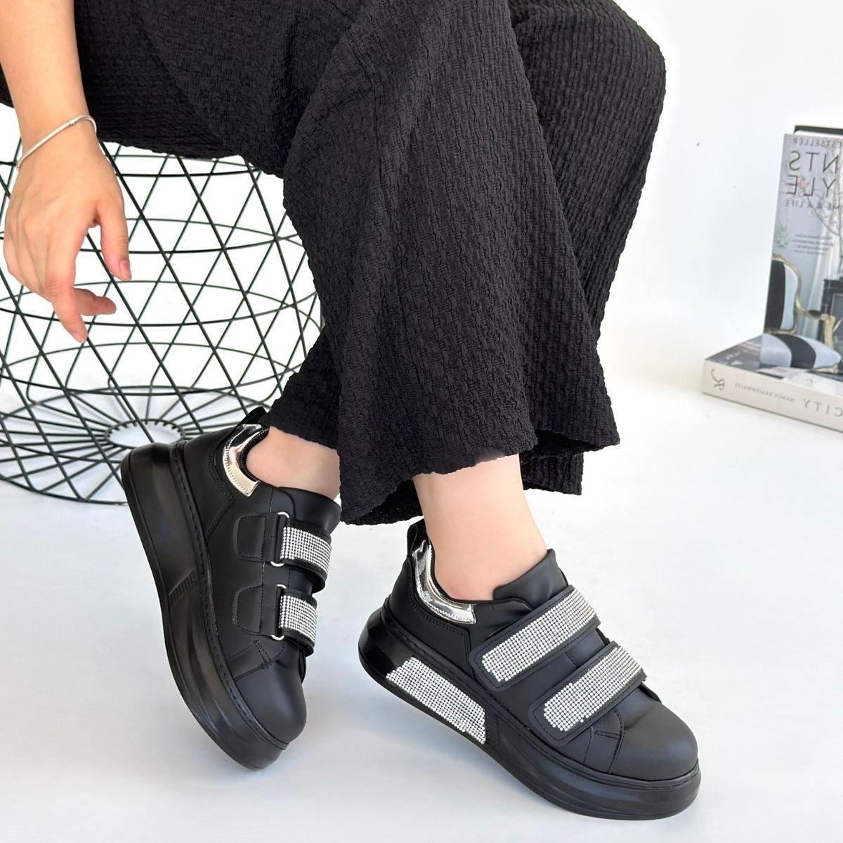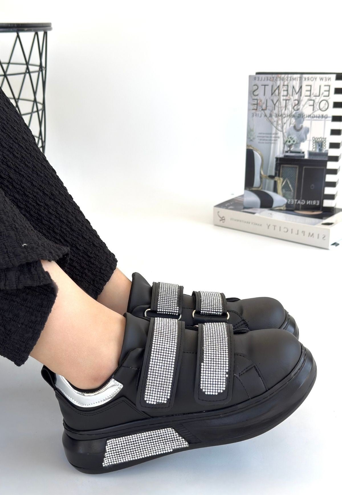 Nino Siyah Cilt Cırt Cırtlı Spor Ayakkabı
