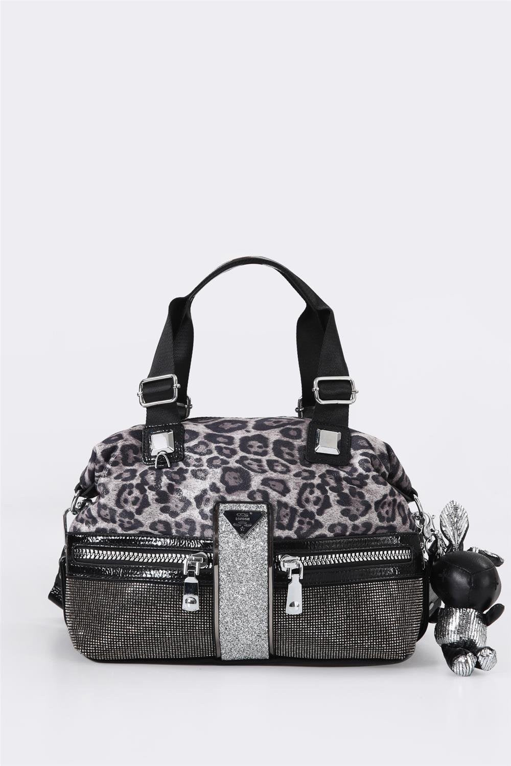 Ölçüler 32 x 26 x 12 cmSuni deri materyalLeopar desen yüzey1 adet fermuarlı ana bölme1 adet fermuarlı iç cep2 adet fermuarlı ön cepÖnde ÇÇS logo detayı2 adet tutulabilir kulp1 adet çıkarılabilir ve ayarlanabilir omuz askısı