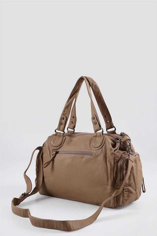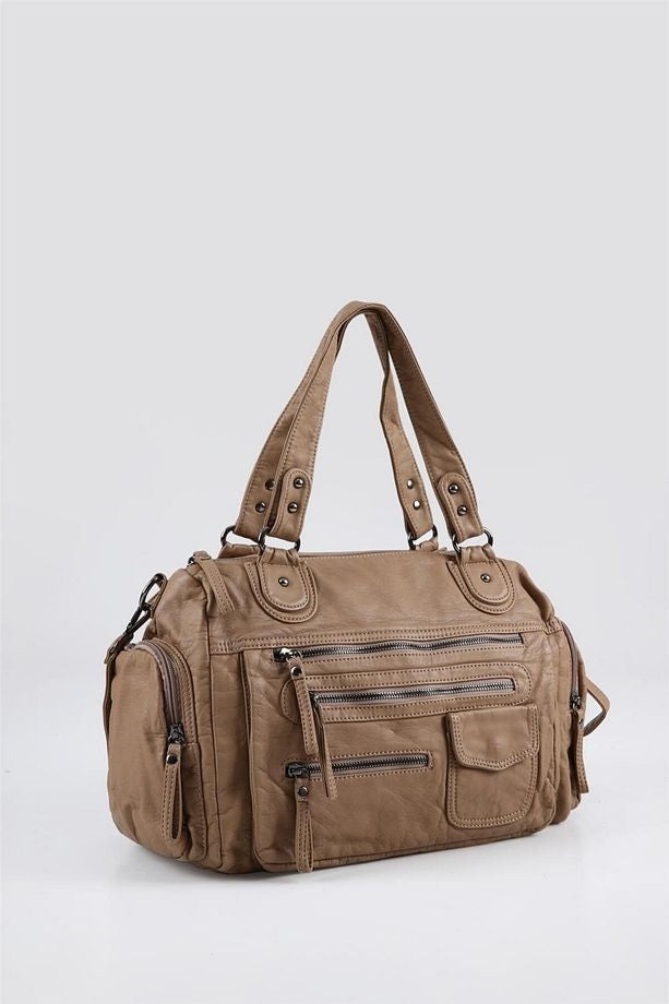 Yıkama deri dokusu, zamanla daha da güzelleşerek kendine özgü bir patina kazanır. Çantanın geniş yapısı, eşyalarınızı düzenli bir şekilde taşımanıza olanak tanırken, şık ve zarif tasarımıyla her ortamda göz alıcı bir görünüm elde etmenizi sağlar. Hem iş hayatında hem de günlük yaşantınızda rahatlıkla kullanabileceğiniz bu omuz çantası, tarzınızı tamamlayacak mükemmel bir seçimdir.