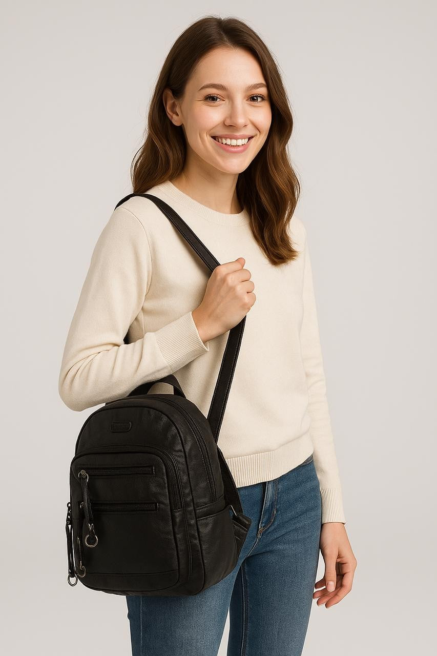 zarif ve kompakt tasarımıyla günlük kullanım için mükemmel bir kadın sırt çantasıdır. Yıkama deri malzemesi, çantaya modern ve şık bir görünüm kazandırırken, dayanıklılığı sayesinde uzun süreli kullanım sağlar. Küçük boyutlarıyla pratik bir seçenek sunan bu çanta, eşyalarınızı düzenli bir şekilde taşımanıza olanak tanır.