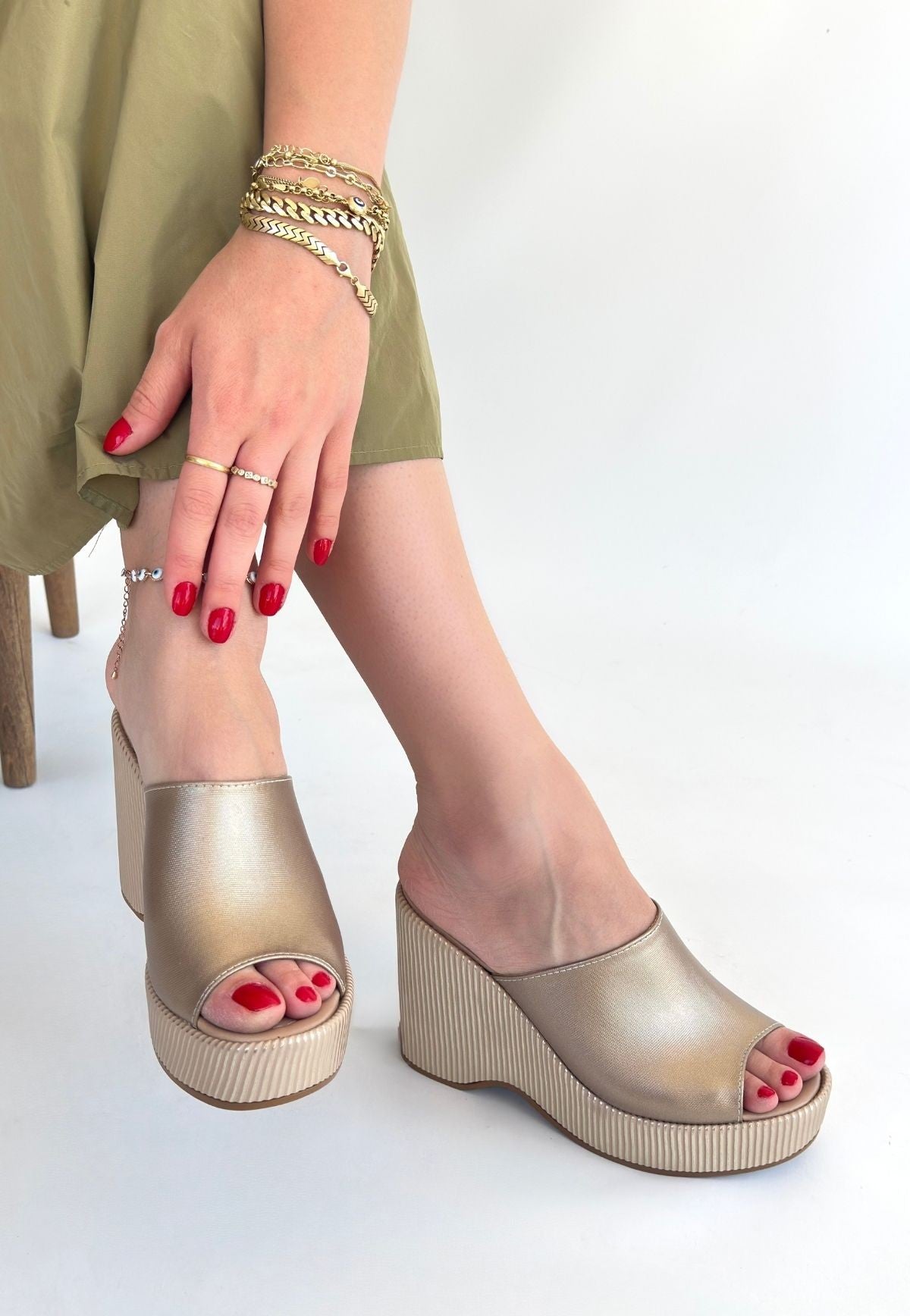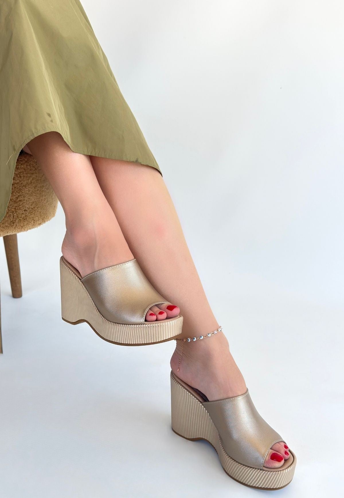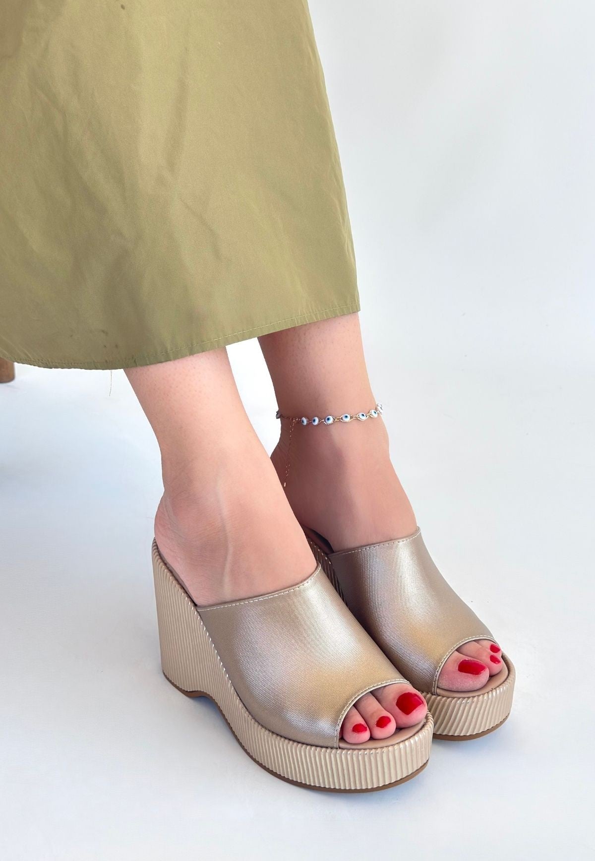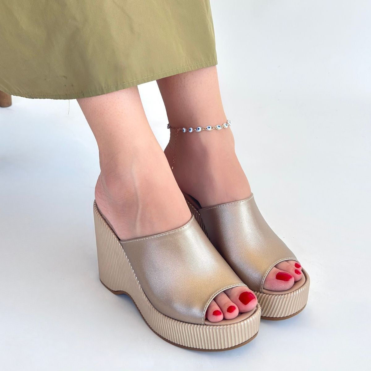 Tlay Bej Cilt Dolgu Topuk Terlik