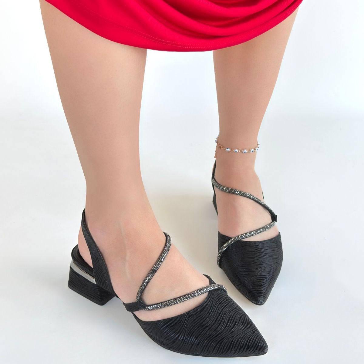 Utana Siyah Cilt Simli Topuklu Ayakkabı